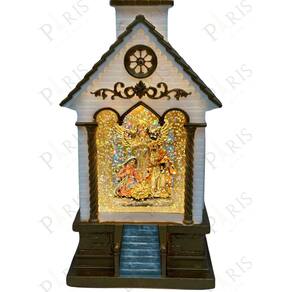 Peça Decorativa Igreja Natalina Sagrada Familia Musical com Led 28cm 14652-PL