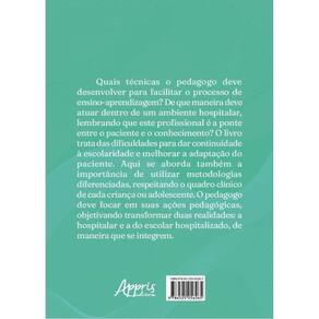 Quais técnicas o pedagogo deve desenvolver para facilitar o processo de ensino-aprendizagem? De que maneira deve atuar dentro de um ambiente hospitalar, lembrando que este profissional é a ponte entre o paciente e o conhecimento? O livro trata das dificuldades para dar continuidade à escolaridade e melhorar a adaptação do paciente. Aqui se aborda também a importância de utilizar metodologias diferenciadas, respeitando o quadro clínico de cada criança ou adolescente. O pedagogo deve focar em suas ações pedagógicas, objetivando transformar duas realidades: a hospitalar e a do escolar hospitalizado, de maneira que se integrem. Marca: ARTERA EDITORA