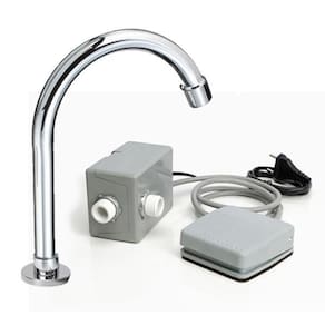 acionador de pedal elétrico para torneira de inox, indicado para ambientes que não é permitido o contato manual com a bica, para evitar contaminação cruzada na hora de atender o paciente. Indicado para consultórios, clinicas, restaurantes, hospitais, laboratórios e para outros tipos de ambientes. Evita o contato manual e contaminação cruzada, proporciona economia de até 70% de água, e maior higienização. Para acionar o pedal basta pressionar com o pé , retirando o acionamento é interrompido. Evita contato manual e contaminação cruzada proporcionando maior higiene. - utilizado em hospitais, clinicas, laboratórios, consultórios, industrias, restaurantes e até mesmo residências. - proporciona economia de até 70% de água. - pode ser instalado com engates flexíveis ou mangueiras fixadas com abraçadeiras. Recomendamos a instalação com bica sem registro para evitar a contaminação cruzada e o fechamento do registro desta forma forçando e podendo danificar o pedal. Não acompanha torneira bica