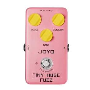 JOYO JF-24 Tiny Huge Fuzz O Pedal para o som fuzz vintage dos anos 90, na cor rosa compacto e elegante Criado pela JOYO, este pedal oferece graves potentes e um som sustentado único, perfeito para solos de guitarra e performances com riffs pesados. Com botões de controle intuitivos para ajustes de level, sustain e tone, o JF-24 permite que você ajuste facilmente os timbres fuzz vintage perfeitos que os guitarristas de rock desejam. Esteja você procurando um sustain cremoso ou um fuzz forte, este pedal tem o que você precisa. Com circuito true-bypass, o JF-24 garante que o sinal da sua guitarra elétrica permaneça totalmente intacto quando o pedal é desligado, preservando o seu som e evitando a diminuição do sinal. Sinta o Fuzz vintage dos anos 90 com o JOYO JF-24 Tiny Huge Fuzz. Esteja você tocando rock clássico, grunge ou shoegaze, este pedal levará seu som a novos patamares.