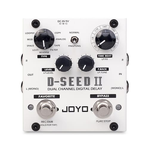 O Pedal Joyo D-Seed 2 Dual Channel Digital Delay Com Looper é a segunda geração do aclamado D-Seed da Joyo Technology. Com novos algoritmos e 8 tipos de delay diferentes, este pedal oferece uma infinidade de opções sonoras para os guitarristas mais exigentes. Os modos de delay incluem Space, LO-FI, Filter, Tape, Copy, Analog, Modulation e Reverse, permitindo que você crie uma variedade de efeitos interessantes.