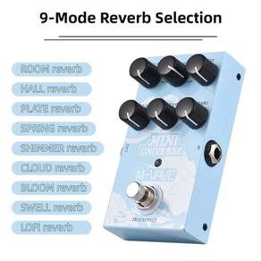 Este pedal oferece 9 tipos de reverbs: room, hall, plate, spring, shimmer, cloud, bloom, swell, e lofi. MINI-EFX permite obter timbres quentes, naturais e brilhantes, além de ter resposta dinâmica. Também possui botões de controle PARAM 1, PARAM2, PARAM 3, DECAY e MIX para você ajustar o parâmetro do efeito. Leve e durável, o pedal pequeno e compacto ocupa pouco espaço na pedaleira. Características de tamanho compacto, cor sólida, construção robusta, leve e durável.