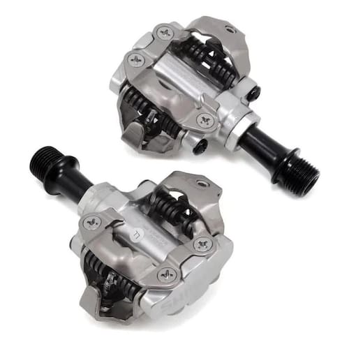 O Pedal Shimano PD-M540 Prata com taquinhos SM-SH51 MTB é ideal para a prática de mountain bike. Esse pedal de encaixe clipless possui fixação dos dois lados e ajuste de tensão das molas, proporcionando um desempenho e confiança clássicos do SPD.