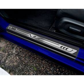 Fabricado em aço inox 304 o kit soleiras, vinil, pedaleiras e descanso de pé além de ajudar a proteger o local onde há o desgaste devido o calçado ficar o tempo todo esfregando, deixará o interior do veículo personalizado e com muito mais estilo.