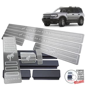 Fabricado em aço inox 304 o kit soleiras, vinil, pedaleiras e descanso de pé além de ajudar a proteger o local onde há o desgaste devido o calçado ficar o tempo todo esfregando, deixará o interior do veículo personalizado e com muito mais estilo.