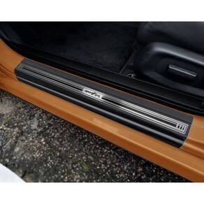 Fabricado em aço inox 304 o kit soleiras, vinil, pedaleiras e descanso de pé além de ajudar a proteger o local onde há o desgaste devido o calçado ficar o tempo todo esfregando, deixará o interior do veículo personalizado e com muito mais estilo.