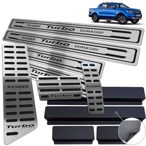 Fabricado em aço inox 304 o kit soleiras, vinil, pedaleiras e descanso de pé além de ajudar a proteger o local onde há o desgaste devido o calçado ficar o tempo todo esfregando, deixará o interior do veículo personalizado e com muito mais estilo.