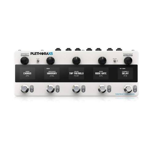 Pedaleira tc electronic plethora x5 com 5 blocos - pedalão toneprint permite carregar e utilizar os efeitos tc electronic toneprint memória para 127 placas com até 5 pedais cada, com base na tc electronic toneprints podem ser guardadas até 75 toneprints por pedal cadeia de sinais livremente seleccionável para cada placa função swap para troca de dois pedais dentro da cadeia de sinais de uma placa simulação integrada de alto-falantes globais sintonizador cromático unitune integrado conectividade bluetooth e usb para o tc electronic toneprint app cinco monitores codificadores de efeito e toneprint e três botões de parâmetros para a programação do plethora x5 mudança de placa para mudar a placa ativa cinco interruptores de pé mash insira o caminho para integrar os seus próprios pedais de efeito na cadeia de sinais entradas e saídas estéreo midi in and thru ligação usb ligação para pedal de expressão disponível opcionalmente caixa metálica unidade de fornecimento de energia incluída funcionalidades: fabricante: tc electronic desenho: effect pedal large modelação de amplificadores: não processador de efeitos integrado: yes drum-computer: não estéreo: sim sintonizador: sim loop de efeitos: sim ligação de auscultador: no saída de gravação: não entrada aux: não ligação usb: sim interface midi: yes pedal expression: não ligação para pedal expression: sim ligação de de pé: não a pilhas: não incl. Transformador: yes largura mm : 299 comprimento mm : 116 altura mm : 53 weight kg : 1,4 Marca: Não Informado