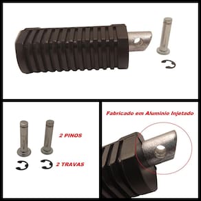 Par Pedaleira Traseira Falcon Bros 125 150 160 Xre Aluminio Injetado A pedaleira traseira da moto, também conhecida como apoio de pé traseiro, serve principalmente para o passageiro apoiar os pés, proporcionando conforto e segurança durante o transporte. Funções detalhadas: - Conforto do passageiro: Permite que o passageiro se apoie e encontre uma posição mais relaxada, especialmente em viagens mais longas. - Segurança: Evita que os pés do passageiro fiquem soltos, reduzindo o risco de contato com partes quentes ou móveis da moto, como o escapamento ou a roda traseira. Material: Aluminio Injetado: - A injeção de alumínio, também conhecida como fundição sob pressão, é um processo de fabricação que utiliza moldes para criar peças metálicas com alta precisão e acabamento, especialmente em larga escala.