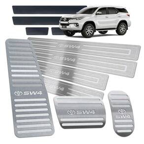 Fabricado em aço inox 304 o kit soleiras, vinil, pedaleiras e descanso de pé além de ajudar a proteger o local onde há o desgaste devido o calçado ficar o tempo todo esfregando, deixará o interior do veículo personalizado e com muito mais estilo.