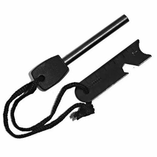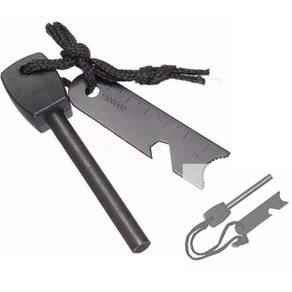 -Pederneira de Sobrevivência com corpo maciço em magnésio de 0,8mm de diâmetro x 9,7cm de comprimento-acompanha riscador com régua e abridor de garrafasItens inclusos-1 Pederneira de sobrevivência-1 Riscador-1 Cordão Marca: Jws-