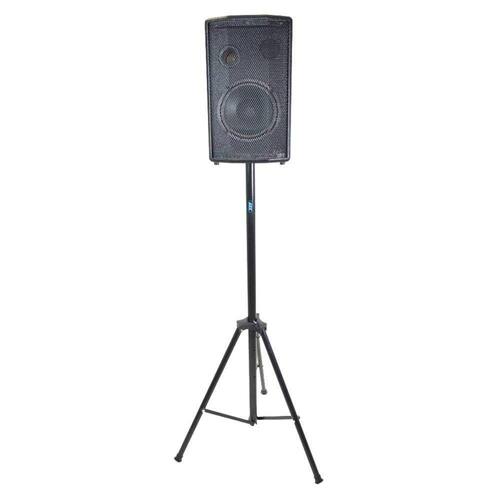 Além disso, o diâmetro ajustável do tripé, entre 70 e 80 cm, garante firmeza e estabilidade, mesmo em terrenos irregulares. Embora o design não acompanhe chapéu, sua construção foi cuidadosamente planejada para ser compatível com diversos modelos de caixas acústicas, destacando-se pela praticidade na montagem e desmontagem.