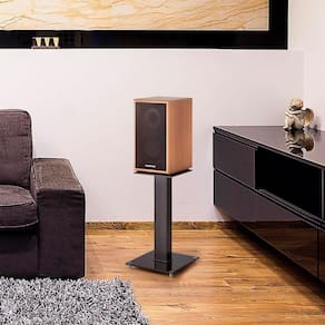 Indicado para caixas acústicas de médio porte, com peso até 10 kg e que possuam base plana possibilitando desta forma que sejam apoiadas sobre a base superior do pedestal.