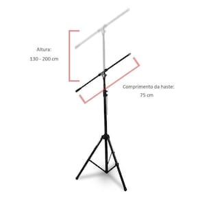 Pedestal para microfone. -tipo:girafa -base:tripé -sistema de ajuste da altura:manípulo de aperto e pino de aço. -sistema de ajuste de comprimento da haste:manípulo de aperto. -sistema de ajuste da inclinação da haste:parafuso tipo morsa. -rosca:3/8 com adaptador para 5/8. -alta qualidade. -dimensões: Altura:130-200 cm Comprimento da haste:75 cm -material:aço -peso:3,5kg -cor:preto -origem: -solução perfeita para microfonar instrumentos como pratos de bateria ou corais,por exemplo. -ideal para aplicação em studios,home studios,TVs,igrejas,casas de eventos,entre outros locais.Pode ser utilizado por músicos,cantores,Youtubers,produtores,narradores,entre outros tantos profissionais. Obs: Não acompanha microfone ou qualquer acessórios Homologação Anatel: 007190901993 Marca: Não Informado