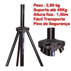 Na Visão Musical, cada pedestal e suporte é fabricado com materiais de alta qualidade e submetido a rigorosos testes de qualidade para assegurar a máxima performance e durabilidade. Nossa equipe de engenheiros e designers trabalham incansavelmente para desenvolver produtos que atendam às necessidades dos músicos e profissionais de áudio. Compromisso com o Consumidor A satisfação do consumidor é a nossa prioridade. Oferecemos um atendimento personalizado e suporte técnico especializado para garantir que nossos produtos superem as expectativas. Estamos sempre à disposição para ajudar nossos parceiros comreciais a encontrar as melhores soluções para suas necessidades específicas. Pedestal para Caixas Acústicas modelos SHORT. Pé com 0,90cm de comprimento. Furação para travamento com pino de segurança. Pêso : 2,84kg Suporte até 45kg Altura fixa : 1,50m Acessórios Inclusos: - Luva adaptadora de 11/4 para 13/8 - Pino de segurança / Tubo 1 1/4 Marca: Não Informado