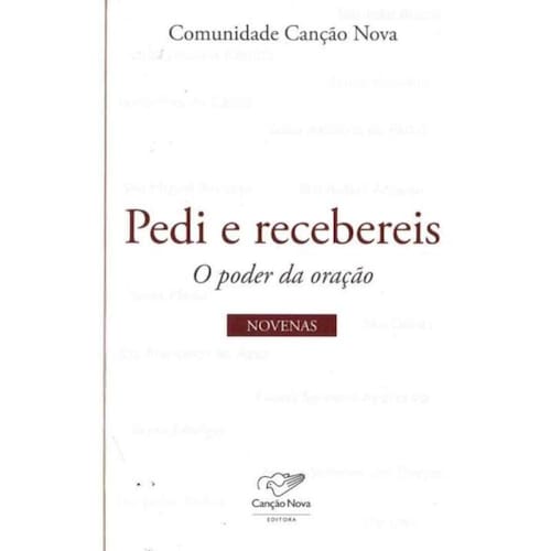 Os Santos São Nossos Intercessores No Céu. Graças Ao Auxílio Deles, Alcançamos Inúmeras Graças Vindas Do Alto. Pedi E Recebereis, Livro Que A Canção Nova Apresenta Em Sua 25A Edição Revisada E Atualizada, Traz Diversas Novenas Que Vem Ao Encontro Da Necessidade Humana De Entrar Em Contato Com O Divino, A Fim De Agradecê-Lo Ou Ter As Suas Preces Atendidas. São Novenas Para Serem Realizadas Durante O Ano Todo A Partir De Diversas Propostas, Sendo Possível Pedir A Cada Mês A Intercessão Do Santo Cuja Festa Comemoramos Naquele Momento. A Obra Reúne Novenas Dedicadas A São João Bosco, São José, Santo Expedito, Santa Rita De Cássia, Santo Antônio De Pádua, São Miguel, São Rafael, São Francisco De Assis, Nossa Senhora Aparecida, São Judas Tadeu, Entre Outros.