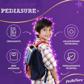 Pediasure é um complemento nutricional para melhorar a dieta das crianças, auxiliando no desenvolvimento físico, mental e imunológico dos pequenos. Especialmente desenvolvido para fornecer 100% das necessidades diárias, como proteínas, ácidos graxos, carboidratos, minerais e vitaminas, nas proporções recomendadas por nutricionistas e pediatras. Pediasure pode ser ingerido diariamente sem prejuízos à saúde da criança.