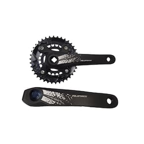 Pedivela duplo ponta quadrada Duplo 22/36t Engrenagens em aço Braços em aluminio forjado. Comprimento: 175mm Sem protetor de corrente Tampas de parafuso de plástico preto Compatibilidade: 10 e 11v Chain line: 49mm. Coroas removíveis. peso 0,925 gramas Marca veloforce Garântia 3 mêses