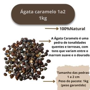 Pedra Ágata Caramelo 1 a 2 cm Rolada 1KG Natural Ágata Caramelo Rolada Tipo da Pedra: Ágata Caramelo Rolada A Ágata Caramelo é uma pedra de tonalidades quentes e terrosas, com tons que variam entre o marrom suave e o dourado. Esta pedra é altamente valorizada tanto pela sua beleza única quanto pelas suas poderosas propriedades curativas e de equilíbrio. Sua energia suave e acolhedora a torna ideal para quem busca estabilidade emocional, segurança e harmonia interna. Propriedades Curativas da Ágata Caramelo: Fortalecimento da Autoconfiança: A Ágata Caramelo auxilia na construção da autoconfiança e na tomada de decisões, além de ajudar a aliviar sentimentos de insegurança e medo, promovendo uma sensação de clareza mental e coragem. Harmonização dos Chakras: A Ágata Caramelo trabalha eficazmente na harmonização dos chakras, especialmente o chakra raiz, trazendo equilíbrio e promovendo a sensação de enraizamento, o que ajuda a alcançar maior bem-estar físico e emocional. Peso do Pacote: 1KG peso garantido Tamanho de cada pedra: 1 a 2 cm Observações Importantes: as pedras incluídas no pacote possuem tamanhos variando entre 1 e 2 cm. Para garantir o peso de 1KG, o pacote será composto predominantemente por pedras de Ágata Caramelo de excelente qualidade, podendo conter também pedras de outros tipos de Ágata ou cristais de qualidade , assegurando o peso anunciado. Por ser uma pedra natural, a Ágata Caramelo pode apresentar variações nas cores, tamanhos, formatos e peso das pedras. No entanto, garantimos que todas as pedras são cuidadosamente selecionadas por nossos especialistas para oferecer a melhor qualidade e pureza possíveis. Qualidade Garantida: As pedras são polidas e selecionadas especialmente para colecionadores e entusiastas de cristais. Enviamos o seu pedido em até 24 horas após a confirmação do pagamento Ficamos à disposição para esclarecer qualquer dúvida antes ou após a compra. Nossa prioridade é garantir sua satisfação Marca: Não Informado