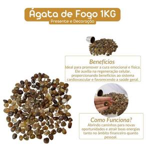 Pedra Ágata de Fogo 1 a 2 cm Rolada 1KG Natural Ágata de Fogo Rolada Tipo da Pedra: Ágata de Fogo Rolada A Ágata de Fogo é uma pedra de grande beleza e poder energético, com cores que variam entre o vermelho, laranja e dourado, criando um efeito visual fascinante e vibrante. É uma pedra associada à transformação, à paixão e à vitalidade, sendo ideal para aqueles que buscam aumentar sua energia pessoal, estimular a criatividade e fortalecer a coragem. Propriedades Curativas da Ágata de Fogo: Aumento da Confiança e Coragem: Esta pedra é perfeita para aqueles que necessitam de um impulso de coragem e determinação. A Ágata de Fogo fortalece a autoconfiança e ajuda a superar medos e inseguranças, promovendo a assertividade e a ação positiva. Estímulo à Energia Vital: A Ágata de Fogo é uma pedra poderosa para revitalizar a energia do corpo, especialmente quando se sente exausto ou sem motivação. Ela é associada ao chakra sacral e ao chakra raiz, estimulando a vitalidade e o vigor físico e emocional. Peso do Pacote: 1KG peso garantido Observações Importantes: As pedras incluídas no pacote possuem tamanhos variando entre 1 e 2 cm. Para garantir o peso de 1KG, o pacote será composto predominantemente por pedras de Ágata de Fogo de excelente qualidade, podendo conter também pedras de outros tipos de Ágata ou cristais de qualidade , assegurando o peso anunciado. Por ser uma pedra natural, a Ágata de Fogo pode apresentar variações nas cores, tamanhos, formatos e peso das pedras. No entanto, garantimos que todas as pedras são cuidadosamente selecionadas por nossos especialistas para oferecer a melhor qualidade e pureza possíveis. Qualidade Garantida: As pedras são polidas e selecionadas especialmente para colecionadores e entusiastas de cristais. Enviamos o seu pedido em até 24 horas após a confirmação do pagamento Ficamos à disposição para esclarecer qualquer dúvida antes ou após a compra. Nossa prioridade é garantir sua satisfação Marca: Não Informado Ean: 7894135847493