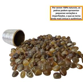 Pedra Ágata de Fogo 1 a 2 cm Rolada 1KG Natural Ágata de Fogo Rolada Tipo da Pedra: Ágata de Fogo Rolada A Ágata de Fogo é uma pedra de grande beleza e poder energético, com cores que variam entre o vermelho, laranja e dourado, criando um efeito visual fascinante e vibrante. É uma pedra associada à transformação, à paixão e à vitalidade, sendo ideal para aqueles que buscam aumentar sua energia pessoal, estimular a criatividade e fortalecer a coragem. Propriedades Curativas da Ágata de Fogo: Aumento da Confiança e Coragem: Esta pedra é perfeita para aqueles que necessitam de um impulso de coragem e determinação. A Ágata de Fogo fortalece a autoconfiança e ajuda a superar medos e inseguranças, promovendo a assertividade e a ação positiva. Estímulo à Energia Vital: A Ágata de Fogo é uma pedra poderosa para revitalizar a energia do corpo, especialmente quando se sente exausto ou sem motivação. Ela é associada ao chakra sacral e ao chakra raiz, estimulando a vitalidade e o vigor físico e emocional. Peso do Pacote: 1KG peso garantido Observações Importantes: As pedras incluídas no pacote possuem tamanhos variando entre 1 e 2 cm. Para garantir o peso de 1KG, o pacote será composto predominantemente por pedras de Ágata de Fogo de excelente qualidade, podendo conter também pedras de outros tipos de Ágata ou cristais de qualidade , assegurando o peso anunciado. Por ser uma pedra natural, a Ágata de Fogo pode apresentar variações nas cores, tamanhos, formatos e peso das pedras. No entanto, garantimos que todas as pedras são cuidadosamente selecionadas por nossos especialistas para oferecer a melhor qualidade e pureza possíveis. Qualidade Garantida: As pedras são polidas e selecionadas especialmente para colecionadores e entusiastas de cristais. Enviamos o seu pedido em até 24 horas após a confirmação do pagamento Ficamos à disposição para esclarecer qualquer dúvida antes ou após a compra. Nossa prioridade é garantir sua satisfação Marca: Não Informado