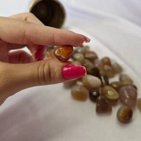 Pedra Ágata de Fogo Rolada 1 a 2 cm 250g Natural Pedra Ágata de Fogo Rolada 1 a 2 cm 250g Natural Ágata de Fogo Rolada Tipo da Pedra: Ágata de Fogo Rolada A Ágata de Fogo é uma pedra de grande beleza e poder energético, com cores que variam entre o vermelho, laranja e dourado, criando um efeito visual fascinante e vibrante. É uma pedra associada à transformação, à paixão e à vitalidade, sendo ideal para aqueles que buscam aumentar sua energia pessoal, estimular a criatividade e fortalecer a coragem. Propriedades Curativas da Ágata de Fogo: Aumento da Confiança e Coragem: Esta pedra é perfeita para aqueles que necessitam de um impulso de coragem e determinação. A Ágata de Fogo fortalece a autoconfiança e ajuda a superar medos e inseguranças, promovendo a assertividade e a ação positiva. Estímulo à Energia Vital: A Ágata de Fogo é uma pedra poderosa para revitalizar a energia do corpo, especialmente quando se sente exausto ou sem motivação. Ela é associada ao chakra sacral e ao chakra raiz, estimulando a vitalidade e o vigor físico e emocional. Peso do Pacote: 250g peso garantido Observações Importantes: As pedras incluídas no pacote possuem tamanhos variando entre 1 e 2 cm. Para garantir o peso de 250g, o pacote será composto predominantemente por pedras de Ágata de Fogo de excelente qualidade, podendo conter também pedras de outros tipos de Ágata ou cristais de qualidade , assegurando o peso anunciado. Por ser uma pedra natural, a Ágata de Fogo pode apresentar variações nas cores, tamanhos, formatos e peso das pedras. No entanto, garantimos que todas as pedras são cuidadosamente selecionadas por nossos especialistas para oferecer a melhor qualidade e pureza possíveis. Qualidade Garantida: As pedras são polidas e selecionadas especialmente para colecionadores e entusiastas de cristais. Enviamos o seu pedido em até 24 horas após a confirmação do pagamento Ficamos à disposição para esclarecer qualquer dúvida antes ou após a compra. Nossa prioridade é garantir sua satisfação Marca: Não Informado