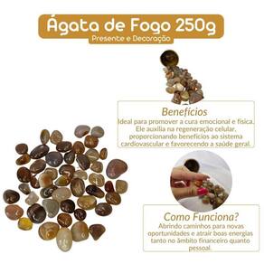 Pedra Ágata de Fogo Rolada 1 a 2 cm 250g Natural Pedra Ágata de Fogo Rolada 1 a 2 cm 250g Natural Ágata de Fogo Rolada Tipo da Pedra: Ágata de Fogo Rolada A Ágata de Fogo é uma pedra de grande beleza e poder energético, com cores que variam entre o vermelho, laranja e dourado, criando um efeito visual fascinante e vibrante. É uma pedra associada à transformação, à paixão e à vitalidade, sendo ideal para aqueles que buscam aumentar sua energia pessoal, estimular a criatividade e fortalecer a coragem. Propriedades Curativas da Ágata de Fogo: Aumento da Confiança e Coragem: Esta pedra é perfeita para aqueles que necessitam de um impulso de coragem e determinação. A Ágata de Fogo fortalece a autoconfiança e ajuda a superar medos e inseguranças, promovendo a assertividade e a ação positiva. Estímulo à Energia Vital: A Ágata de Fogo é uma pedra poderosa para revitalizar a energia do corpo, especialmente quando se sente exausto ou sem motivação. Ela é associada ao chakra sacral e ao chakra raiz, estimulando a vitalidade e o vigor físico e emocional. Peso do Pacote: 250g peso garantido Observações Importantes: As pedras incluídas no pacote possuem tamanhos variando entre 1 e 2 cm. Para garantir o peso de 250g, o pacote será composto predominantemente por pedras de Ágata de Fogo de excelente qualidade, podendo conter também pedras de outros tipos de Ágata ou cristais de qualidade , assegurando o peso anunciado. Por ser uma pedra natural, a Ágata de Fogo pode apresentar variações nas cores, tamanhos, formatos e peso das pedras. No entanto, garantimos que todas as pedras são cuidadosamente selecionadas por nossos especialistas para oferecer a melhor qualidade e pureza possíveis. Qualidade Garantida: As pedras são polidas e selecionadas especialmente para colecionadores e entusiastas de cristais. Enviamos o seu pedido em até 24 horas após a confirmação do pagamento Ficamos à disposição para esclarecer qualquer dúvida antes ou após a compra. Nossa prioridade é garantir sua satisfação Marca: Não Informado Ean: 7894135847479