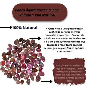 Tamanho Aproximado: As pedras incluídas no pacote possuem tamanhos variando entre 1 a 3 cm. Para garantir o peso de 1 KG, o pacote será composto predominantemente por pedras de Ágata Rosa de excelente qualidade, podendo conter também pedras de outros tipos de Ágata Rosa ou cristais de qualidade similar, assegurando o peso anunciado.