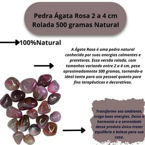 Pedra Ágata Rosa 2 a 4 cm Rolada 500 gramas Natural Pedra Ágata Rosa 2 a 4 cm Rolada 500 gramas Natural A ágata Rosa é uma pedra natural conhecida por suas energias calmantes e protetoras. Essa versão rolada, com tamanhos variando entre 2 a 4 cm, pesa aproximadamente 500 gramas, tornando-a ideal tanto para uso pessoal quanto para fins terapêuticos e decorativos. Benefícios da Ágata Rosa: Equilíbrio emocional: A Ágata Rosa é reconhecida por ajudar a acalmar emoções, proporcionando uma sensação de paz e harmonia interior. Ela é especialmente indicada para quem busca alívio de tensões emocionais e . Fortalece o coração: Essa pedra é considerada uma poderosa aliada para fortalecer o chakra cardíaco, promovendo sentimentos de amor, compaixão e empatia. A Ágata Rosa estimula a autoaceitação e a abertura para relações mais saudáveis. Promove a cura emocional: Ela ajuda a liberar traumas e mágoas emocionais, permitindo que a pessoa se liberte de padrões negativos do passado e se abra para novas experiências com leveza. Observações Importantes:Por ser uma pedra natural, o Ágata Rosa pode apresentar variações nas cores, tamanhos, formatos e peso das pedras. No entanto, garantimos que todas as pedras são cuidadosamente selecionadas por nossos especialistas para oferecer a melhor qualidade e pureza possíveis. Tamanho Aproximado: As pedras incluídas no pacote possuem tamanhos variando entre 2 a 4 cm. Para garantir o peso de 500 gramas, o pacote será composto predominantemente por pedras de Ágata Rosade excelente qualidade, podendo conter também pedras de outros tipos de Ágata ou cristais de qualidade , assegurando o peso anunciado. Qualidade Garantida: As pedras são polidas e selecionadas especialmente para colecionadores e entusiastas de cristais. enviamos a sua encomenda em até 24 horas após a confirmação do pagamento Caso tenha alguma dúvida nos mande mensagem que responderemos rapidinho para te ajudar Marca: Não Informado