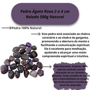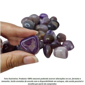 Pedra Ágata Roxa 2 a 4 cm Rolada 500G Natural Ágata Roxa Rolada tipo da Pedra: Ágata Roxa Rolada A Ágata Roxa é uma pedra fascinante, conhecida por suas cores vibrantes que variam de tons suaves de lavanda a roxos mais profundos, criando padrões únicos e hipnotizantes. Esta pedra é altamente valorizada por suas propriedades espirituais e curativas, sendo ideal para aqueles que buscam equilíbrio emocional, clareza mental e conexão com a energia espiritual. Propriedades Curativas da Ágata Roxa: Abertura Espiritual: Esta pedra está associada ao chakra coronário e ao chakra da garganta, promovendo a abertura da mente e facilitando a comunicação espiritual. Ela é excelente para meditação, ajudando a alcançar uma maior compreensão espiritual e intuitiva. Harmonização e Proteção: A Ágata Roxa também oferece proteção energética, criando um escudo contra influências negativas. Ela harmoniza as energias ao redor, promovendo um ambiente pacífico e seguro. Peso do Pacote: 500G peso garantido Observações Importantes: As pedras incluídas no pacote possuem tamanhos variando entre 2 e 4 cm. Para garantir o peso de 500G, o pacote será composto predominantemente por pedras de Ágata Roxa de excelente qualidade, podendo conter também pedras de outros tipos de Ágata ou cristais de qualidade , assegurando o peso anunciado. Por ser uma pedra natural, a Ágata Roxa pode apresentar variações nas cores, tamanhos, formatos e peso das pedras. No entanto, garantimos que todas as pedras são cuidadosamente selecionadas por nossos especialistas para oferecer a melhor qualidade e pureza possíveis. Qualidade Garantida: As pedras são polidas e selecionadas especialmente para colecionadores e entusiastas de cristais. Enviamos o seu pedido em até 24 horas após a confirmação do pagamento Ficamos à disposição para esclarecer qualquer dúvida antes ou após a compra. Nossa prioridade é garantir sua satisfação Marca: Não Informado