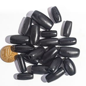 Pedra Basalto Preto Barril Furado Longitudinal 20 a 25 mm Tipo B, Lapidado tipo Barril Furado vasado HORIZONTAL ou longitudinaltural a espessura do furo 3 mm aproximadamente para montagem de artesanato Pingente, colar ou Pulseira.