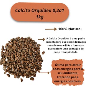 As pedras incluídas no pacote possuem tamanhos variando entre 0,2 e 1 cm. Para garantir o peso de 1KG, o pacote será composto predominantemente por pedras de Calcita Orquídea de excelente qualidade, podendo conter também pedras de outras variedades de Calcita ou cristais de qualidade similar, assegurando o peso anunciado. Por ser uma pedra natural, a Calcita Orquídea pode apresentar variações nas cores, tamanhos, formatos e peso das pedras. No entanto, garantimos que todas as pedras são cuidadosamente selecionadas por nossos especialistas para oferecer a melhor qualidade e pureza possíveis.