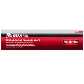 Características * Material: Óxido de Alumínio * Dimensões: 200x50x25mm * Função: Afiar e refinar arestas de corte * Dupla Face: Diferentes tamanhos de grão para variados níveis de afiação * Formato: Retangular