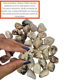 Pedra Jaspe Zebra 2 a 4 cm Rolada 500 gramas Natural A Pedra Jaspe Zebra é uma pedra natural com padrões impressionantes de cores como preto, branco e bege, criando um efeito visual único. Valorizada tanto por sua estética quanto por suas propriedades energéticas, a Jaspe Zebra é frequentemente Utilizado em terapias holísticas, meditação e decoração. Benefícios: Equilíbrio e Harmonia: Promove estabilidade e equilíbrio energético, ajudando a manter a harmonia emocional e física. Proteção Energética: Age como um escudo contra energias negativas, criando um ambiente de proteção ao redor de quem a utiliza. Fortalecimento Físico e Emocional: Aumenta a resistência física e emocional, proporcionando apoio em momentos de ou dificuldades. Estímulo à Criatividade: Favorece a criatividade e a inovação, estimulando novas ideias e soluções. Por ser uma pedra natural, o Jaspe Zebra pode apresentar variações nas cores, tamanhos, formatos e peso das pedras. No entanto, garantimos que todas as pedras são cuidadosamente selecionadas por nossos especialistas para oferecer a melhor qualidade e pureza possíveis. Tamanho Aproximado: As pedras incluídas no pacote possuem tamanhos variando entre 2 a 4 cm. Para garantir o peso de 500g, o pacote será composto predominantemente por pedras de Jaspe Zebra de excelente qualidade, podendo conter também pedras de outros tipos de Jaspe ou cristais de qualidade , assegurando o peso anunciado. Qualidade Garantida: As pedras são polidas e selecionadas especialmente para colecionadores e entusiastas de cristais. Marca: Não Informado
