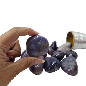 Pedra Natural Ágata Roxa 4 a 6 cm Rolada 1 kg Ágata Roxa Rolada tipo da Pedra: Ágata Roxa Rolada A Ágata Roxa é uma pedra fascinante, conhecida por suas cores vibrantes que variam de tons suaves de lavanda a roxos mais profundos, criando padrões únicos e hipnotizantes. Esta pedra é altamente valorizada por suas propriedades espirituais e curativas, sendo ideal para aqueles que buscam equilíbrio emocional, clareza mental e conexão com a energia espiritual. Propriedades Curativas da Ágata Roxa: Abertura Espiritual: Esta pedra está associada ao chakra coronário e ao chakra da garganta, promovendo a abertura da mente e facilitando a comunicação espiritual. Ela é excelente para meditação, ajudando a alcançar uma maior compreensão espiritual e intuitiva. Harmonização e Proteção: A Ágata Roxa também oferece proteção energética, criando um escudo contra influências negativas. Ela harmoniza as energias ao redor, promovendo um ambiente pacífico e seguro. Peso do Pacote: 1 Kg peso garantido Observações Importantes: As pedras incluídas no pacote possuem tamanhos variando entre 4 e 6 cm. Para garantir o peso de 1 kg, o pacote será composto predominantemente por pedras de Ágata Roxa de excelente qualidade, podendo conter também pedras de outros tipos de Ágata ou cristais de qualidade , assegurando o peso anunciado. Por ser uma pedra natural, a Ágata Roxa pode apresentar variações nas cores, tamanhos, formatos e peso das pedras. No entanto, garantimos que todas as pedras são cuidadosamente selecionadas por nossos especialistas para oferecer a melhor qualidade e pureza possíveis. Qualidade Garantida: As pedras são polidas e selecionadas especialmente para colecionadores e entusiastas de cristais. Enviamos o seu pedido em até 24 horas após a confirmação do pagamento Ficamos à disposição para esclarecer qualquer dúvida antes ou após a compra. Nossa prioridade é garantir sua satisfação
