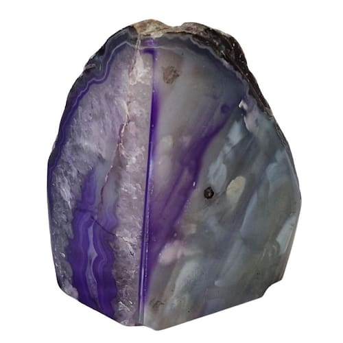 O Geodo de Ágata Roxa é uma peça natural única, formada ao longo de milhares de anos. Seu interior cristalizado exibe tons vibrantes de roxo, tornando-se uma excelente opção para decoração, meditação e energização de ambientes.