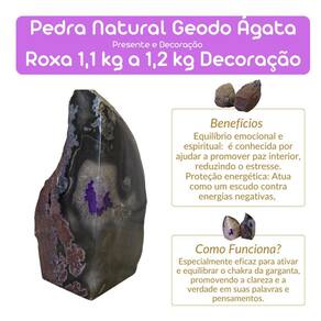 Pedra Natural Geodo Ágata Roxa 1,1 kg a 1,2 kg Decoração Pedra Natural Geodo Ágata Roxa - 1,1 kg a 1,2 kg O Geodo de Ágata Roxa é uma peça natural impressionante, formada ao longo de milhares de anos. Com seu interior cristalizado em tons vibrantes de roxo, essa pedra é perfeita para decoração, meditação e energização de ambientes, promovendo equilíbrio e harmonia. Benefícios da Ágata Roxa
