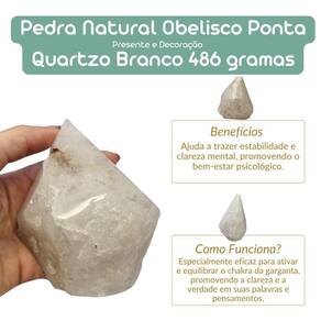 Pedra Natural Obelisco Ponta Quartzo Branco 486 gramas Pedra Natural Obelisco Ponta Quartzo Branco - 486g O Quartzo Branco é uma pedra natural conhecida por suas propriedades purificadoras e sua capacidade de equilibrar energias. No formato de obelisco com ponta polida, é ideal para decoração, harmonização de ambientes e práticas esotéricas. Benefícios do Quartzo Branco