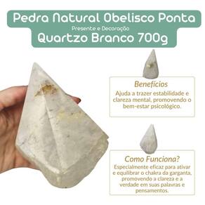 Pedra Natural Obelisco Ponta Quartzo Branco 700 gramas Pedra Natural Obelisco Ponta Quartzo Branco - 700g O Quartzo Branco é uma pedra natural conhecida por suas propriedades purificadoras e harmonizadoras. No formato de obelisco com ponta polida, é ideal para decoração, energização de ambientes e práticas esotéricas. Benefícios do Quartzo Branco