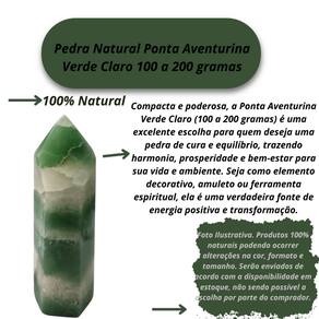A Ponta Aventurina Verde Claro de 100 a 200 gramas é uma verdadeira joia da natureza, com sua cor suave e refrescante que traz serenidade e equilíbrio para qualquer ambiente. Esta pedra natural é perfeita para quem deseja um toque de tranquilidade, prosperidade e harmonia em seu espaço, seja como peça decorativa ou amuleto energético. Com suas propriedades curativas e calmantes, a aventurina verde claro é conhecida por promover a harmonia emocional, a abundância e o bem-estar. Sua energia suave favorece o equilíbrio interior e o alinhamento dos chakras, criando um ambiente de paz e positividade. Benefícios da Ponta Aventurina Verde Claro (100 a 200 gramas):