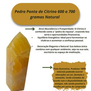 A Pedra Ponta de Citrino, com peso entre 600 e 700 gramas, é uma peça impressionante, conhecida por sua energia vibrante e poderosa. Sua cor dourada intensa simboliza luz, prosperidade e abundância, sendo ideal para quem deseja atrair energias positivas e aumentar a vitalidade. Perfeita para decoração, meditação ou terapias energéticas, essa pedra é uma excelente escolha para quem busca um aumento de energia e equilíbrio em sua vida. Benefícios: