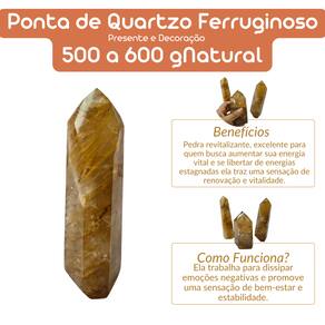 Pedra Ponta de Quartzo Ferruginoso Natural - 500 a 600 gramas