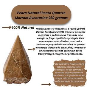 Impressionante e imponente, a Ponta Quartzo Marrom Aventurina de 930 gramas é uma peça majestosa e poderosa que transmite uma energia de força, equilíbrio e proteção. Com sua cor quente e acolhedora, essa pedra combina as propriedades curativas do quartzo e a energia vibrante da aventurina, tornando-a uma excelente escolha para quem busca transformação energética e prosperidade. Sua grande massa e beleza natural fazem desta ponta uma peça de destaque em qualquer ambiente. Seja como elemento decorativo, amuleto de proteção ou ferramenta de cura, ela possui um impacto tanto visual quanto energético. Benefícios da Ponta Quartzo Marrom Aventurina (930 gramas):