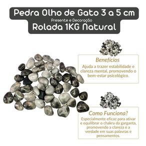 Pedra Olho de Gato 3 a 5 cm Rolada 1 kilo Natural Pedra Olho de Gato Rolada Tipo da Pedra: Pedra Olho de Gato Rolada A Pedra Olho de Gato é uma variação fascinante da família das pedras preciosas, com uma aparência marcante que lembra o olho de um felino, com reflexos que brilham como uma linha fina, criando um efeito único e hipnotizante. Sua cor varia do dourado ao marrom e verde-oliva, proporcionando um visual atraente e intrigante. Essa pedra é conhecida por suas poderosas propriedades energéticas, especialmente no que diz respeito à proteção, clareza mental e equilíbrio emocional. Propriedades Curativas da Pedra Olho de Gato: Proteção e Fortalecimento Energético: A Pedra Olho de Gato é tradicionalmente considerada uma pedra protetora, sendo excelente para criar um campo energético seguro ao redor da pessoa. Ela ajuda a afastar energias negativas, trazendo uma sensação de proteção e segurança contra influências externas. Aumento da Confiança e Determinação: Assim como outras pedras de olho, o Olho de Gato fortalece a autoconfiança e a coragem. Ele é um excelente auxílio para quem busca maior determinação em alcançar objetivos, além de ajudar a superar medos e inseguranças, encorajando ações positivas. Peso do Pacote: 1KG peso garantido Observações Importantes: As pedras incluídas no pacote possuem tamanhos variando entre 3 e 5 cm. Para garantir o peso de 1KG, o pacote será composto predominantemente por pedras de Pedra Olho de Gato de excelente qualidade, podendo conter também pedras de outras variedades de Olho de Gato ou cristais de qualidade , assegurando o peso anunciado. Por ser uma pedra natural, a Pedra Olho de Gato pode apresentar variações nas cores, tamanhos, formatos e peso das pedras. No entanto, garantimos que todas as pedras são cuidadosamente selecionadas por nossos especialistas para oferecer a melhor qualidade e pureza possíveis. Qualidade Garantida: As pedras são polidas e selecionadas especialmente para colecionadores e entusiastas de cristais. Enviamos o seu pedido em até 24 horas após a confirmação do pagamento Ficamos à disposição para esclarecer qualquer dúvida antes ou após a compra. Nossa prioridade é garantir sua satisfação Marca: Não Informado