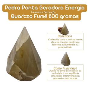 Pedra Ponta Geradora Energia Quartzo Fumê 800 gramas Apresentamos a Pedra Ponta Geradora Energia Quartzo Fumê, com peso de 800 gramas. Esta pedra, com sua coloração única e enigmática, é conhecida por suas poderosas propriedades energéticas que promovem proteção, equilíbrio e cura. Benefícios do Quartzo Fumê: Proteção Energética: O Quartzo Fumê é amplamente utilizado para transmutar energias negativas, proporcionando uma proteção energética poderosa. Equilíbrio Emocional: Auxilia no alívio do , da ansiedade e traz equilíbrio emocional, promovendo um estado de calma interior. Limpeza Energética: Atua na purificação dos ambientes, criando uma atmosfera limpa e harmoniosa. Cura Física: Acredita-se que o Quartzo Fumê também ajude a aliviar dores e tensões no corpo, além de fortalecer o sistema imunológico. Caso tenha dúvidas, estamos à disposição para ajudar Marca: Não Informado Ean: 7894135849954