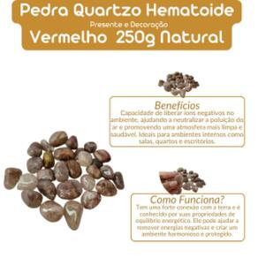 Pedra Quartzo Hematoide Vermelho 1a 2 cm Rolado 250g Natural Quartzo Hematoide Vermelho Rolado Tipo da Pedra: Quartzo Hematoide Vermelho Rolado O Quartzo Hematoide Vermelho é uma pedra encantadora que combina a clareza e as propriedades do quartzo com a energia fortalecedora do hematoide, criando uma pedra de poder vibrante. É altamente apreciado por sua coloração vermelha intensa, que é resultado da interação entre o quartzo e o hematoide, uma substância rica em ferro. É uma pedra indicada para quem busca vitalidade, foco e equilíbrio energético. Propriedades Curativas do Quartzo Hematoide Vermelho: Estimulação da Criatividade e Foco: O Quartzo Hematoide Vermelho pode ser excelente para aqueles que buscam melhorar a concentração e a clareza mental, além de estimular a criatividade e a capacidade de tomar decisões mais assertivas. Equilíbrio e Ancoragem: Essa pedra ajuda a ancorar as energias e promover uma sensação de estabilidade emocional, além de equilibrar o fluxo energético do corpo. É especialmente útil para aliviar tensões e sentimentos de insegurança. Peso do Pacote: 250G peso garantido Observações Importantes: Por ser uma pedra natural, o Quartzo Hematoide Vermelho pode apresentar variações nas cores, tamanhos, formatos e peso das pedras. No entanto, garantimos que todas as pedras são cuidadosamente selecionadas por nossos especialistas para oferecer a melhor qualidade e pureza possíveis. Tamanho Aproximado: As pedras incluídas no pacote possuem tamanhos variando entre 1 e 2 cm. Para garantir o peso de 250G o, o pacote será composto predominantemente por pedras de Quartzo Hematoide Vermelho de excelente qualidade, podendo conter também pedras de outros tipos de Quartzo ou cristais de qualidade , assegurando o peso anunciado. Qualidade Garantida: As pedras são polidas e selecionadas especialmente para colecionadores e entusiastas de cristais. Enviamos o seu pedido em até 24 horas após a confirmação do pagamento Ficamos à disposição para esclarecer qualquer dúvida antes ou após a compra. Nossa prioridade é garantir sua satisfação