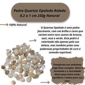Pedra Quartzo Opalado Rolado 0,2 a 1 cm 250 gramas Natural Quartzo Opalado Rolado Tipo da Pedra: Quartzo Opalado Rolado O Quartzo Opalado é uma pedra fascinante, com um brilho e cores que variam entre tons suaves de branco, azul, rosa e verde. Esta pedra é valorizada não apenas pela sua beleza, mas também pelas suas poderosas propriedades de cura e conexão espiritual. É uma pedra indicada para quem busca tranquilidade, inspiração e uma conexão mais profunda com sua essência interior. Propriedades do Quartzo Opalado: Abertura Espiritual: Ele facilita a conexão com a sabedoria interior e a intuição, ajudando em processos de meditação e autoconhecimento. A energia desta pedra favorece o desbloqueio de chakras e a elevação da consciência espiritual. Purificação e Cura: O Quartzo Opalado é uma excelente pedra para purificar as energias e promover a cura espiritual e emocional. Ela limpa energias estagnadas e ajuda a restaurar o equilíbrio entre corpo, mente e espírito. Peso do Pacote: 250G peso garantido Tamanho das pedras: 0,2 a 1 cm Observações Importantes: Por ser uma pedra natural, o Quartzo Opalado pode apresentar variações nas cores, tamanhos, formatos e peso das pedras. No entanto, garantimos que todas as pedras são cuidadosamente selecionadas por nossos especialistas para oferecer a melhor qualidade e pureza possíveis. Tamanho Aproximado: As pedras incluídas no pacote possuem tamanhos variando entre 0,2 a 1 cm. Para garantir o peso de 250g, o pacote será composto predominantemente por pedras de Quartzo opalado de excelente qualidade, podendo conter também pedras de outros tipos de Quartzo ou cristais de qualidade , assegurando o peso anunciado. Qualidade Garantida: As pedras são polidas e selecionadas especialmente para colecionadores e entusiastas de cristais. Enviamos o seu pedido em até 24 horas após a confirmação do pagamento Ficamos à disposição para esclarecer qualquer dúvida antes ou após a compra. Nossa prioridade é garantir sua satisfação Marca: Não Informado