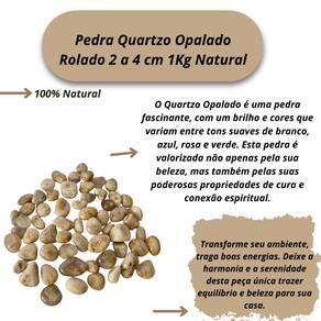 Observações Importantes: Por ser uma pedra natural, o Quartzo Opalado pode apresentar variações nas cores, tamanhos, formatos e peso das pedras. No entanto, garantimos que todas as pedras são cuidadosamente selecionadas por nossos especialistas para oferecer a melhor qualidade e pureza possíveis. Tamanho Aproximado: As pedras incluídas no pacote possuem tamanhos variando entre 2 a 4 cm. Para garantir o peso de 1Kg, o pacote será composto predominantemente por pedras de Quartzo Opalado de excelente qualidade, podendo conter também pedras de outros tipos de Quartzo ou cristais de qualidade similar, assegurando o peso anunciado. Qualidade Garantida: As pedras são polidas e selecionadas especialmente para colecionadores e entusiastas de cristais.
