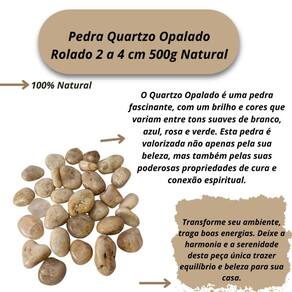 Pedra Quartzo Opalado Rolado 2 a 4 cm 500g Natural Quartzo Opalado Rolado Tipo da Pedra: Quartzo Opalado Rolado O Quartzo Opalado é uma pedra fascinante, com um brilho e cores que variam entre tons suaves de branco, azul, rosa e verde. Esta pedra é valorizada não apenas pela sua beleza, mas também pelas suas poderosas propriedades de cura e conexão espiritual. É uma pedra indicada para quem busca tranquilidade, inspiração e uma conexão mais profunda com sua essência interior. Propriedades do Quartzo Opalado: Abertura Espiritual: Ele facilita a conexão com a sabedoria interior e a intuição, ajudando em processos de meditação e autoconhecimento. A energia desta pedra favorece o desbloqueio de chakras e a elevação da consciência espiritual. Purificação e Cura: O Quartzo Opalado é uma excelente pedra para purificar as energias e promover a cura espiritual e emocional. Ela limpa energias estagnadas e ajuda a restaurar o equilíbrio entre corpo, mente e espírito. Peso do Pacote: 500G peso garantido Tamanho das pedras: 2 a 4 cm Observações Importantes: Por ser uma pedra natural, o Quartzo Opalado pode apresentar variações nas cores, tamanhos, formatos e peso das pedras. No entanto, garantimos que todas as pedras são cuidadosamente selecionadas por nossos especialistas para oferecer a melhor qualidade e pureza possíveis. Tamanho Aproximado: As pedras incluídas no pacote possuem tamanhos variando entre 2 a 4 cm. Para garantir o peso de 500g, o pacote será composto predominantemente por pedras de Quartzo Opalado de excelente qualidade, podendo conter também pedras de outros tipos de Quartzo ou cristais de qualidade , assegurando o peso anunciado. Qualidade Garantida: As pedras são polidas e selecionadas especialmente para colecionadores e entusiastas de cristais. Enviamos o seu pedido em até 24 horas após a confirmação do pagamento Ficamos à disposição para esclarecer qualquer dúvida antes ou após a compra. Nossa prioridade é garantir sua satisfação Marca: Não Informado Ean: 7894135851308