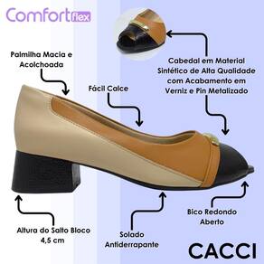 Este sapato peep toe feminino da Comfortflex combina sofisticação com conforto em cada detalhe. Seu cabedal foi desenvolvido com material de alta qualidade e acabamento brilhoso, complementado por detalhe metalizado na parte frontal que valoriza ainda mais o visual. O design com abertura frontal oferece leveza ao caminhar e um toque delicado ao modelo.